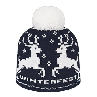 Acrylic/Nylon/Spandex blend knit beanie Fully custom knit-indesign with a maximum of four yarn colors Choose from one of our Knit-In Mascots here for a quick custom look Contact customer service for current production schedule Made in the USA