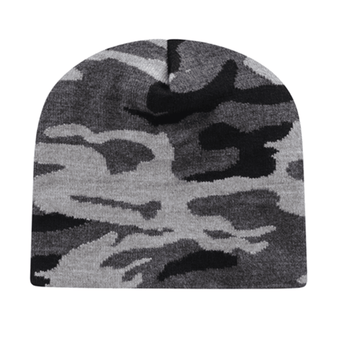 Acrylic/nylon/spandex blend knit beanie Urban camouflage knit-in pattern