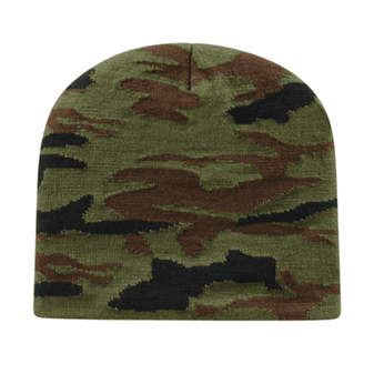 Acrylic/nylon/spandex blend knit beanie Woodland camouflage knit-in pattern
