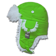 The Neon/White Fur Aviator Hat is a soft, snug-fitting hat with a neon shell and white faux fur lining. It features earflaps that can be worn up or down and a plastic buckle fastener at the chin.