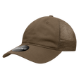 The Women's Relaxed Trucker Cap is a 6-panel baseball cap designed with a smaller fit for women. It features an integrated cotton sweatband, 8 rows of stitching across the pre-curved bill, rear mesh panels for breathability,  and an adjustable plastic snap closure. Made of 100% cotton.