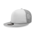 The Two Tone Flat Bill Foam Trucker Cap is a constructed, 5-panel cap with a white polyester foam front and a colored mesh back. It features an integrated cotton sweatband, a flat bill and an adjustable plastic snap closure.