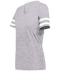 * Eco-Revive product featuring 95% recycled polyester/5% cotton * Wicks moisture * Tagless label * V-neck collar * Set-in sleeves