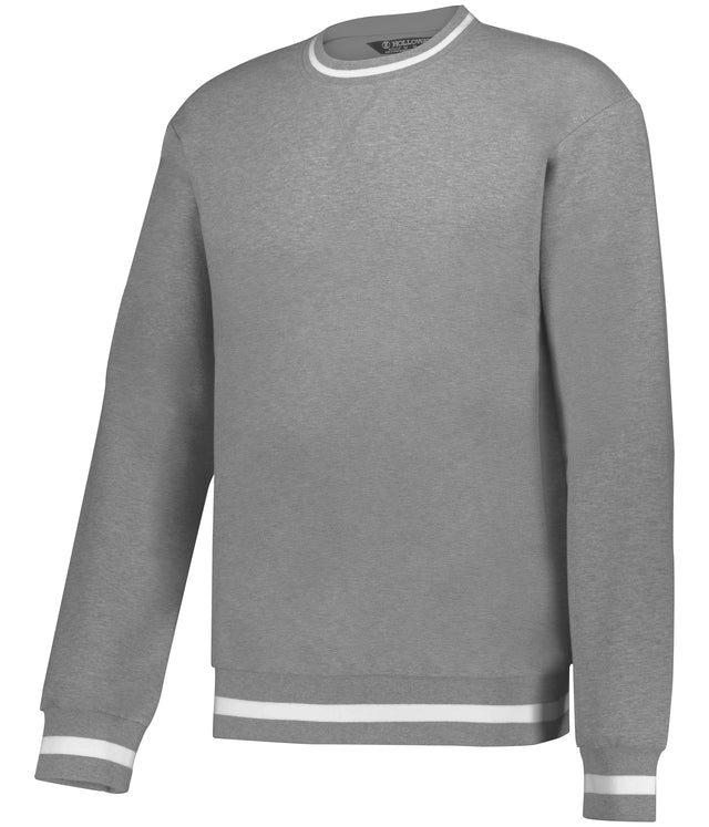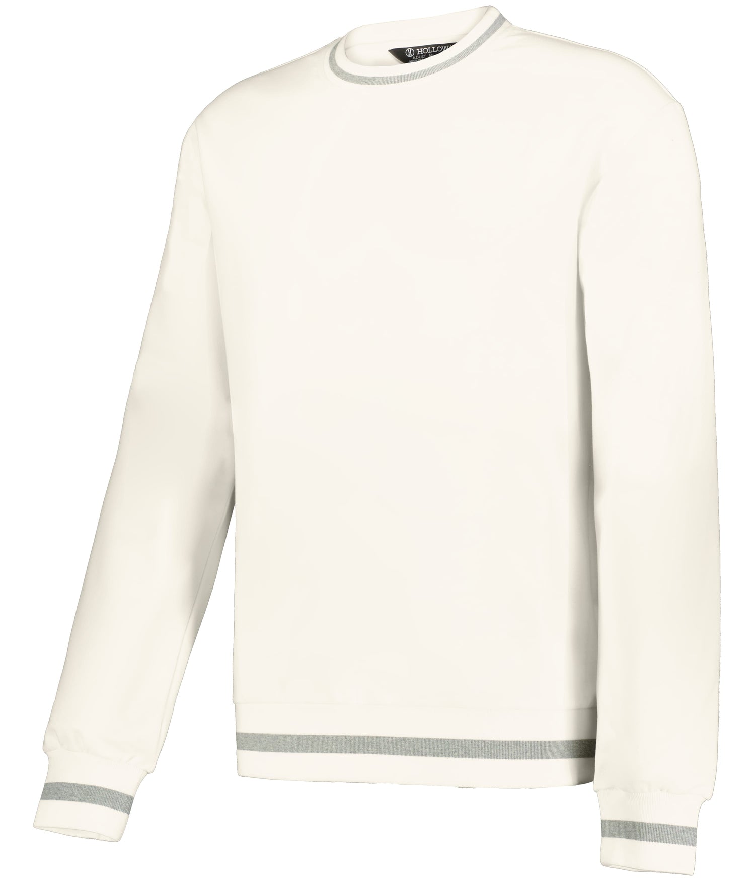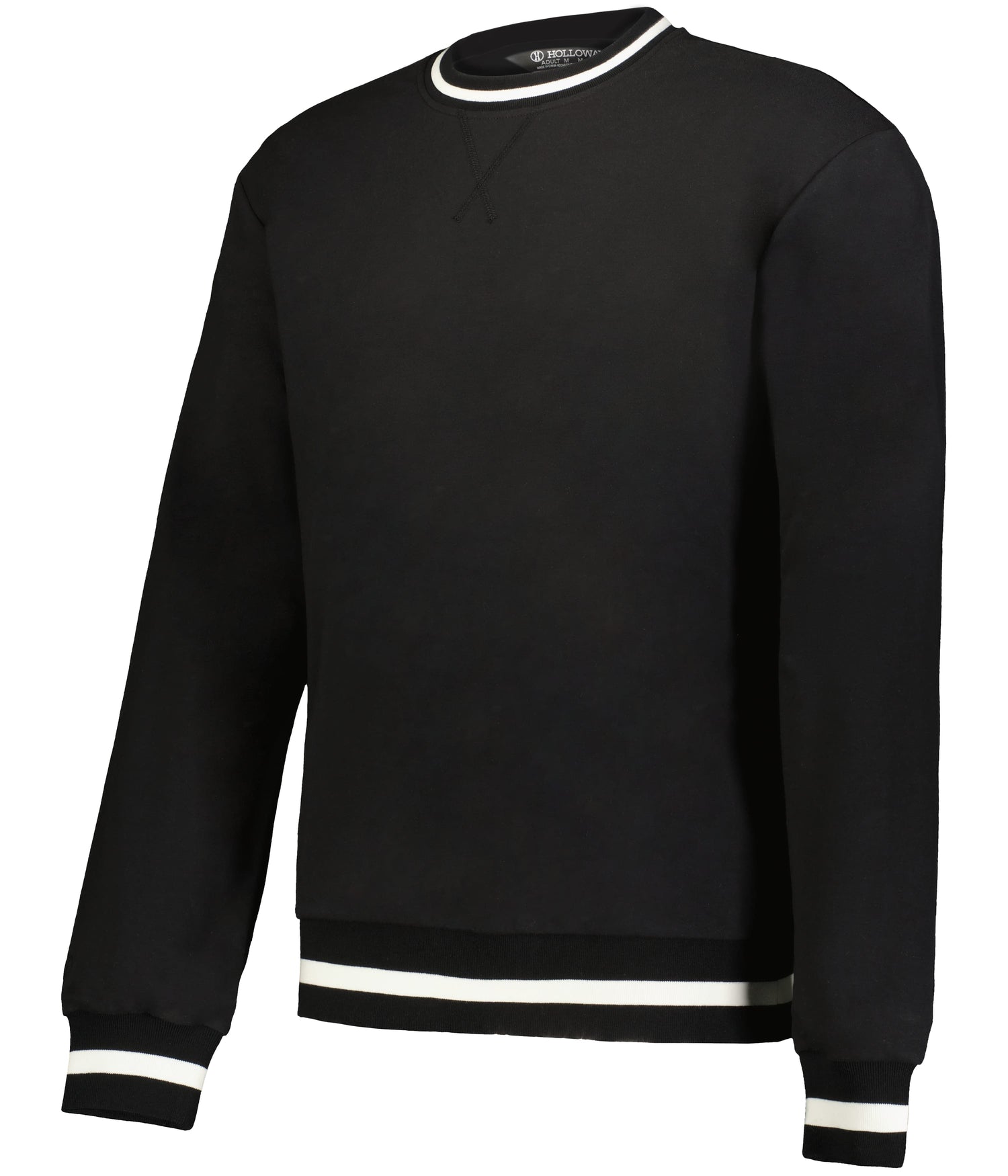* 9-ounce, 51% polyester/45% cotton/4% spandex sport french terry * Hanger loop label * Crew neck with V-stitching at neckline * Set-in sleeves * Rib-knit collar, cuffs and bottom band