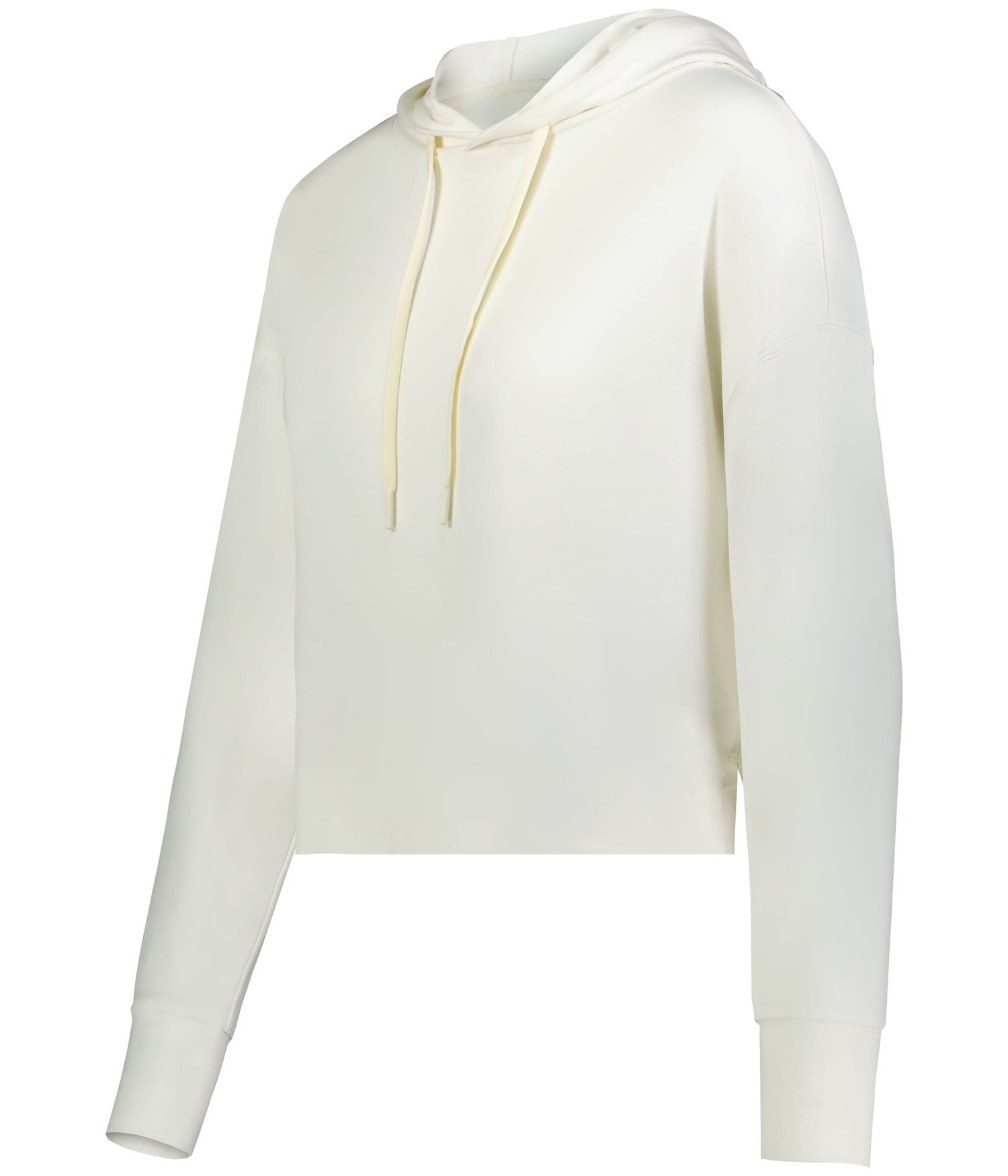 * Micro terry 70% polyester/24% rayon/6% spandex * Ladies' fit * Relaxed boxy fit * Drawcord hood * Stretch grosgain back neck tape * Back seam with raw edge detail * Deep side vents