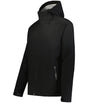 * 100% breathable polyester with DWR and PU coating * Shell fabric features 9,000MM fabric waterproof rating 2,000G/M2 fabric breathability rating * Stain resistant * Heat sealed label * High collar, full-zip with hook-and-loop neck closure * Hood with inside adjustable shockcord closure * Sealed seams for protection from rain * Raglan sleeves * Front zippered pockets with waterproof coating * Open bottom with snap closure * Dropped tail bottom * Water-resistant * Waterproof