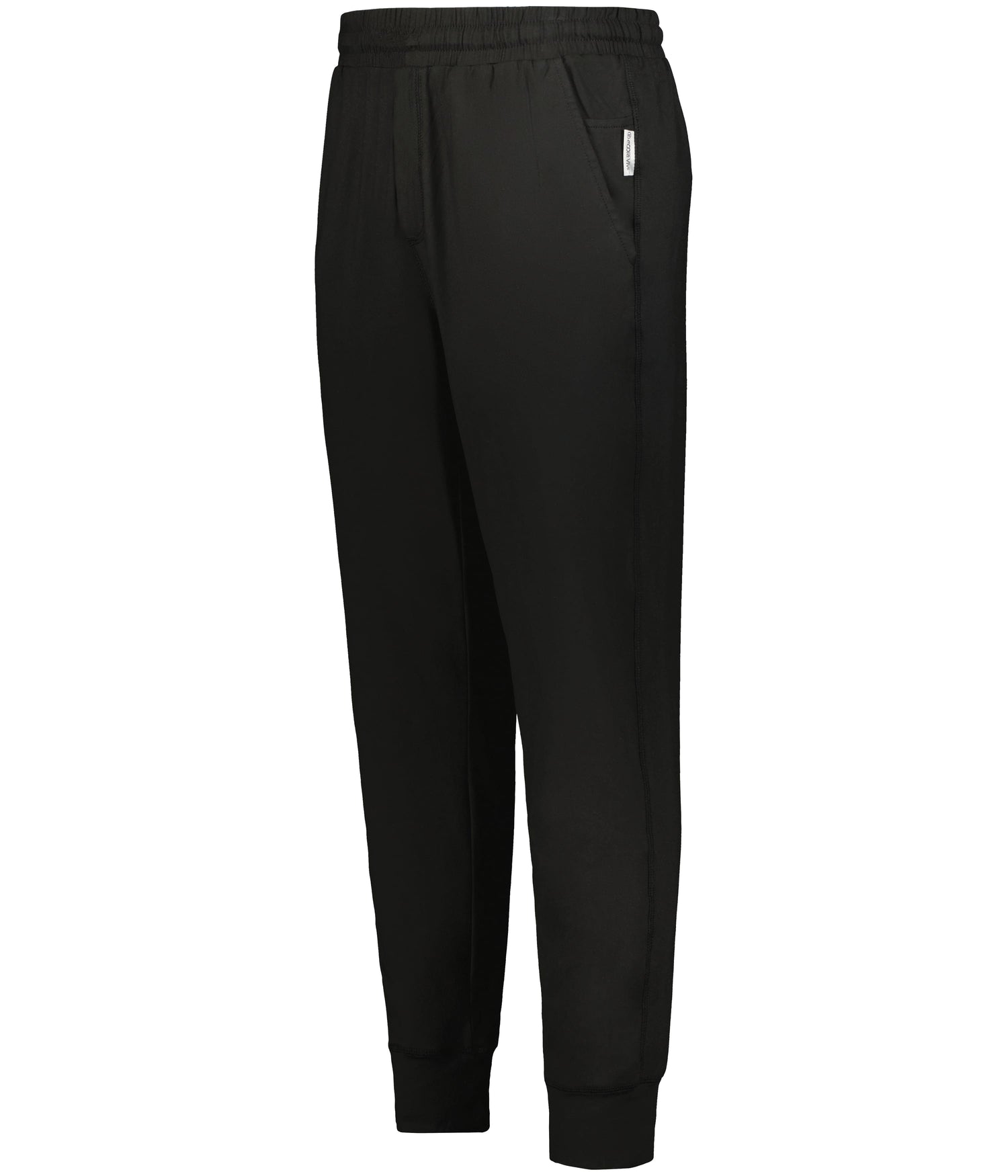 * Lightweight, soft-knit * Solids, 89% recycled polyester/11% spandex * Heathers, 45% recycled polyester/44% polyester/11% spandex * Wicks moisture * Tagless label * Covered elastic waistband * Faux fly * Front pockets with inner valuables pocket inside left pocket * Back pocket with zipper * Tapered leg