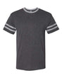 - Seamless 1x1 ribbed collar with double-needle coverstitching on front neck