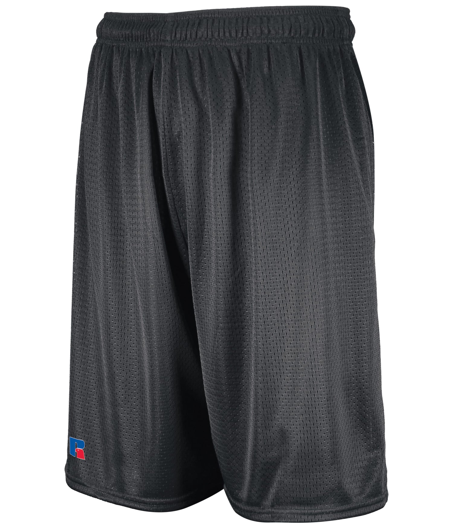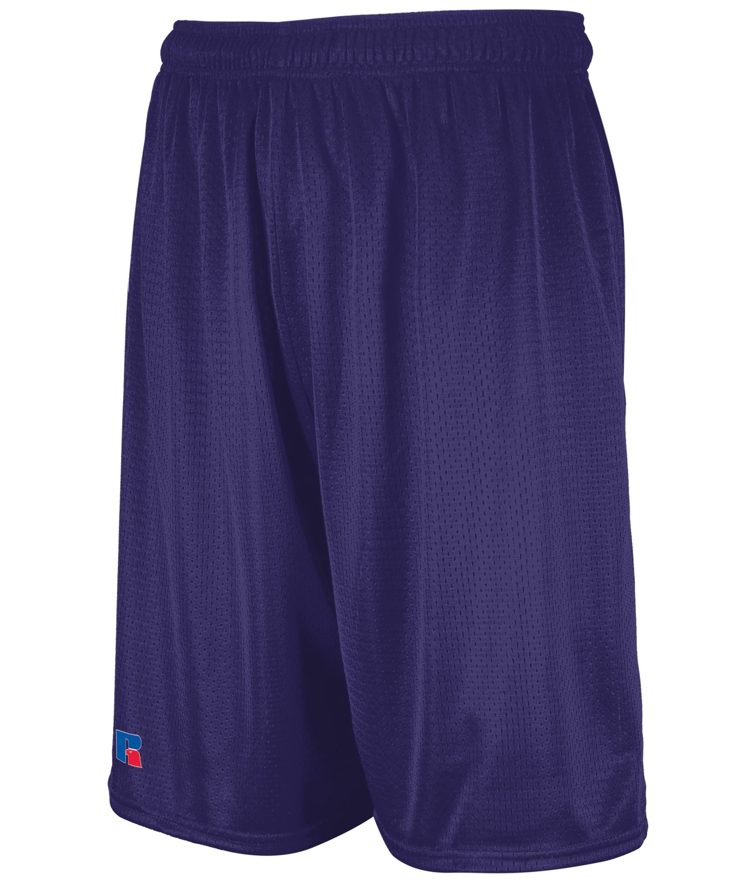 100% polyester tricot mesh * Fully lined * "R RUSSELL" on right leg * Covered waistband * 7-inch inseam