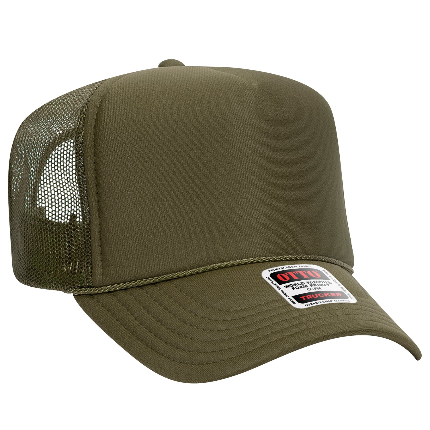 Stock your inventory with the OTTO 39-165, a professional-grade 5-panel high crown mesh back trucker hat built for comfort and durability. This foam front trucker cap delivers the classic structured look your customers expect.