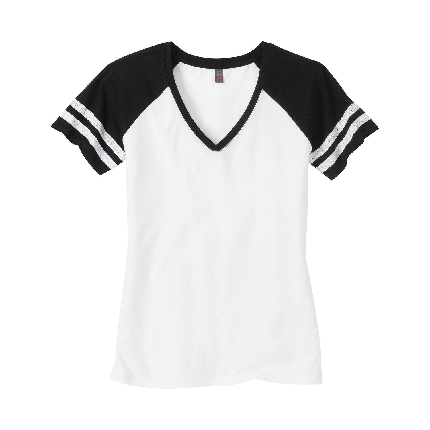 Distressed printed stripes on the sleeves give this tee a retro, sporty look.