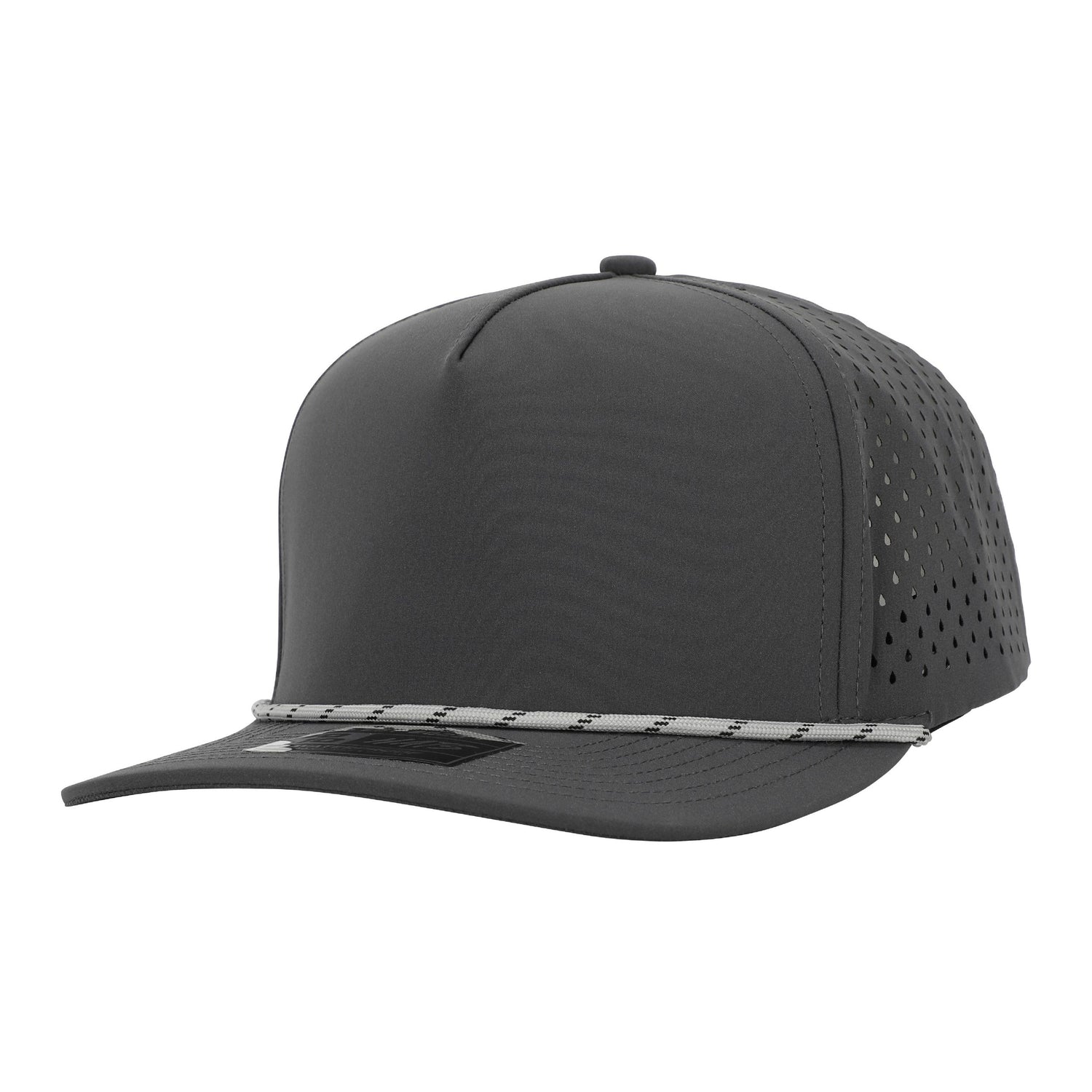 The 1010 Hats R615 is a high-performance five-panel cap with distinctive rope detailing that adds visual interest and premium styling. Built with waterproof dry-fit fabric that wicks moisture away from your skin, this structured mid-profile cap keeps you cool and comfortable during workouts, team events, or outdoor adventures. The perforated laser-cut side and back panels provide superior ventilation, while the snapback closure ensures a custom fit for every wearer.