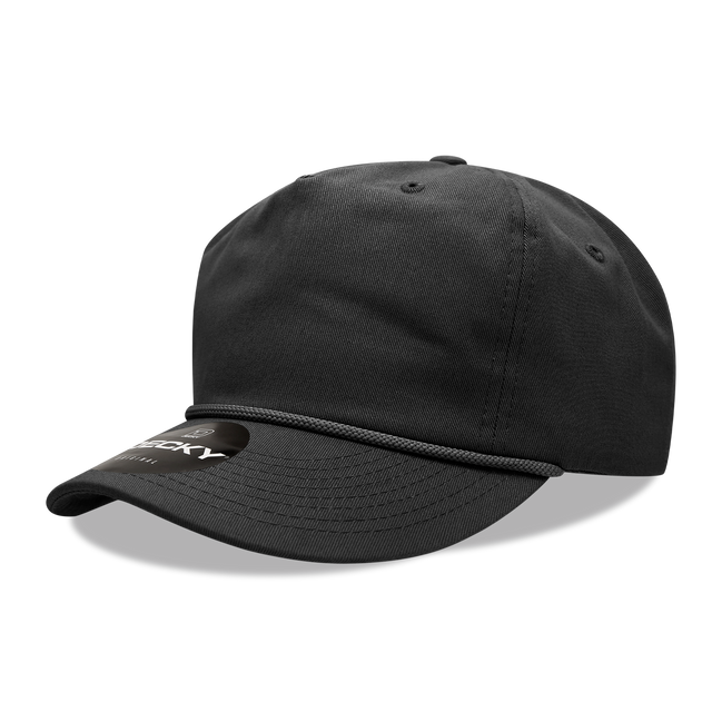 The 5-Panel Cap is made of 100% cotton. It features a braid at the base of the crown and a semi-curved bill. It has an integrated cotton sweatband, ventilation eyelets and is finished with a plastic snap closure for a perfect fit.