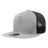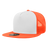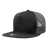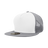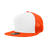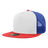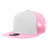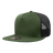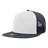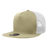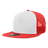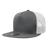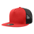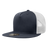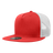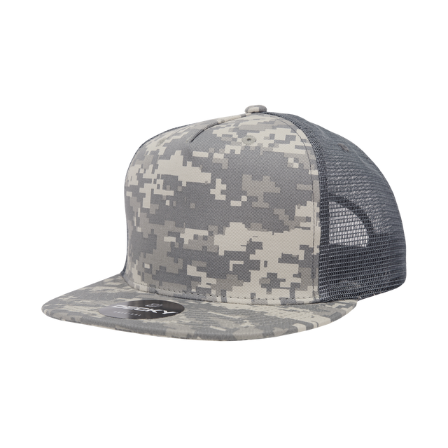 The 5 Panel Cotton Flat Bill Trucker is a constructed cap with a cotton front and mesh back. It features an integrated sweatband, a retro flat bill, and an adjustable plastic snap closure.