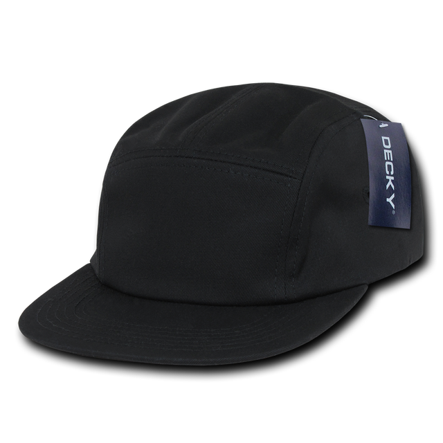 The 5 panel Cotton Racer Cap is a lightweight cap featuring a cotton sweatband, retro flat bill, and plastic press-type buckle closure.
