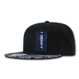 The Bandanna Snapback is a 6-panel structured cap featuring a unique paisley design on the bill. This cap features an integrated cotton sweatband, retro flat bill, stitched eyelets, and is finished with a plastic snapback closure.