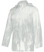 100% PVC * Unisex fit * Woven label * Front zipper with outside storm flap and snaps * Detachable hood with drawcord on Adult sizes only * Air mesh vented back for breathability * Raglan sleeves with adjustable snap closures * Front pockets with flaps and snap closure * Open bottom