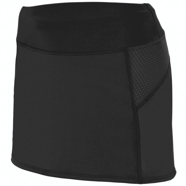 Lightweight 90% polyester/10% spandex knit skirt * Graphite Heavyweight 90% polyester/10% spandex knit inner short * 94% polyester/6% spandex maze mesh yoke * Wicks moisture * Odor resistant * Tag-free label * Low rise, wide flat waistband for secure fit and comfort * Hidden possession pocket in waistband * Flatlock stitching provides comfort and helps prevent chafing * Longer length at back of skort for added coverage