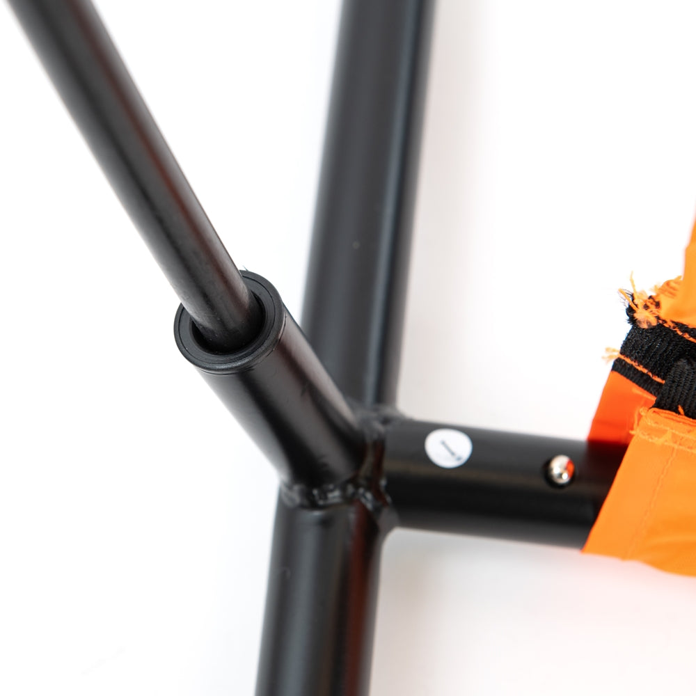 - High-visibility orange frame with mesh netting