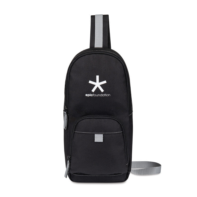 - A modern and sustainable update to a classic sling bag using recycled fabric and webbing made from plastic bottles.