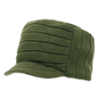 The Knitted Flat Top Cap (w/ Visor) is a stylish, knitted cap featuring a flat top, thick ribbed construction, and short visor.