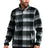 - Construction: 1/4 placket with branded metal snaps; side pockets; open hem and cuffs; exterior embossed faux leather tab at hem